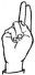На ћирилици написано ВИОЛЕТА ДАНГУБИЋ састоји се из 15 слова [?]. Исписано ћириличном једноручном азбуком за глувонеме: